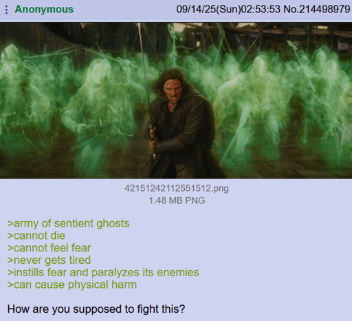 🍹Early to RISA 🧉@sh.itjust.worksM to Greentext@sh.itjust.works · 6 months agoAnon watches Lord of the Ringssh.itjust.worksimagemessage-square57linkfedilinkarrow-up11arrow-down10