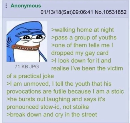 “You have power over your crying - not over the youth on the street. Realize this, and you will find your gay card.”