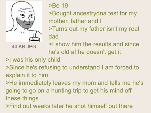 arrow-up11arrow-down1imageAnon takes a DNA testsh.itjust.works🍹Early to RISA 🧉@sh.itjust.worksM to Greentext@sh.itjust.works · 8 days agomessage-square63linkfedilink