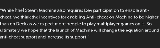 I mean, Valve could explicitly say that they have some trusted hardware and software stack or something and let games know whether the environment’s been modified.