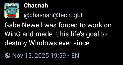 I’d argue that what we’re seeing now from valve is the fruits of a 10+ year campaign to undermine windows. And MS has been digging their own trench undermining windows at the same time, making their job even easier lol