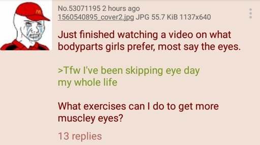 To train eye strength, I recommend looking at things. Reading picture books can help stimulate hypertrophy as well.