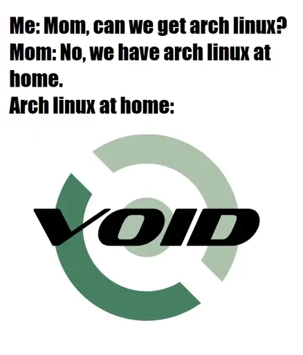 0x4E4F@lemmy.dbzer0.com to linuxmemes@lemmy.world · 1 year agoWhen you can't afford Arch Linuxlemmy.dbzer0.comimagemessage-square8linkfedilinkarrow-up10arrow-down10