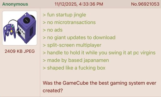 arrow-up11arrow-down1imageAnon remembers the GameCubesh.itjust.works🍹Early to RISA 🧉@sh.itjust.worksM to Greentext@sh.itjust.works · 1 month agomessage-square114linkfedilink