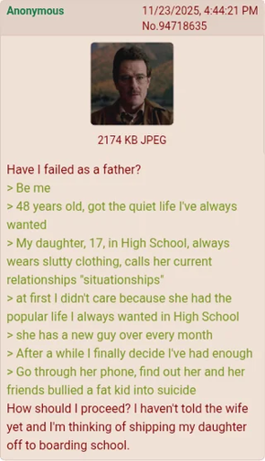 ‘Have I failed as a father?’ well, your asking 4chan, OP, so yes.
