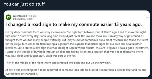 “Oh shit, InfiniteRespect4757 just confessed to a crim on the Internet from years ago. We finally got em boys!”