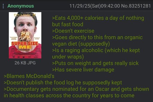 It also doesn’t help that he didn’t actually achieve anything. Mcds is still popular, still unhealthy, and he gave people more ammo to fat shame.