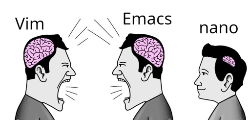 vim guy, emacs guy look big brain. me brain smol. me bathe yesterday, thank you.