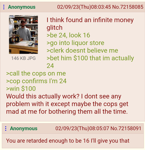 arrow-up11arrow-down1imageAnon is going to be richsh.itjust.works🍹Early to RISA 🧉@sh.itjust.worksM to Greentext@sh.itjust.works · 2 months agomessage-square14linkfedilink