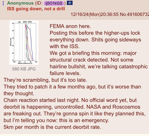 🍹Early to RISA 🧉@sh.itjust.worksM to Greentext@sh.itjust.works · 9 months agoAnon has a warning about the ISSsh.itjust.worksimagemessage-square2linkfedilinkarrow-up10arrow-down10file-text