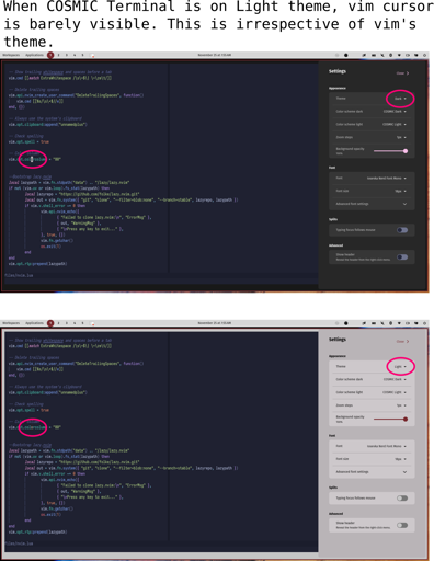 Linux@lemmy.ml•When COSMIC Terminal is on Light theme, vim cursor is barely visible