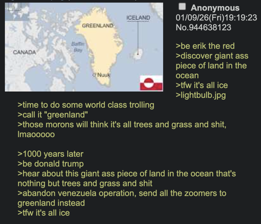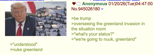 a greentext. this is a place where people post screenshots from 4chan where at least one line of text is green